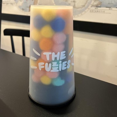 This makes a great on the go game as it all fits into a cup and the setup is super simple and quick. It's a game for all ages. Simply remove a fuzzy from the tower and place it anywhere higher than it's original starting point without making the tower crumble!