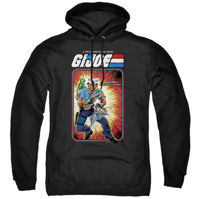 Add some cool nostalgia to your wardrobe with this G.I. Joe adult graphic hoodie! The officially licensed sweatshirt has been custom designed with a big, colorful graphic of the classic G.I. Joe logo alongside Snake Eyes and '82 - an eye-catching image that's been professionally printed for long-lasting quality. Its black hue makes this hoodie a versatile addition to your cool-weather wardrobe, while the attached hood keeps you cozy and stylish in cooler weather. Crafted from a high-quality blend of 50% cotton and 50% poly fleece, the hoodie ensures both comfort and durability. And when it's time for a refresh, simply machine wash it cold with like colors, then tumble dry low to keep this G.I. Joe fan wear looking its best.