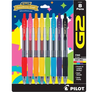 - Includes 8 Fine Point (0.7mm) Pilot G2 assorted gel pens