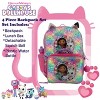 - 4 PIECE GABBY"S DOLLHOUSE BACKPACK SET FOR GIRLS - This backpack sparkles and shines and is a must have for BACK TO SCHOOL. The set includes a 16-inch backpack with character print front zip pocket and 3D Pandy Paw ears, detachable lunch box, water bottle, & squishy fidget ball.