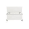 An updated classic, this white cedar chest is the perfect addition to your home décor. Blending style and function with shiplap siding, turned legs, decorative molding, and a beautiful white finish. The top opens wide to reveal ample storage space and is cedar lined. Safety is a priority with child safe hinges and breath holes. Some assembly required.