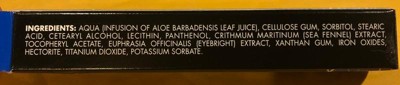 aqua (infusion of aloe barbadensis leaf juice), cellulose gum, sorbitol, stearic acid, cetearyl alcohol, lecithin, panthenol, crithmum maritimum (sea fennel) extract, tocopheryl acetate, euphrasia officinalis (eyebright) extract, xanthan gum, iron oxides, hectorite, titanium dioxide, potassium sorbate.' '