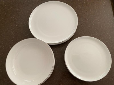 [This review was collected as part of a promotion.] This dinnerware set is absolutely gorgeous. I love how simple but elegant this set is. The platinum trim around the edges gives this set such a classy and elegant look. You can definitely tell that this dinnerware set is made of high quality material. It is very durable and I really like that each piece has some weight to them. The raised edges on the plates are so perfect. I like that I don't have to worry about food sliding off. These plates are definitely perfect for everyday use, formal dinner parties or even holiday gatherings. Another great thing about this dinnerware set is that it is dishwasher safe. I am very pleased with this dinnerware set and I highly recommend this product.
