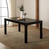 Give a sleek and effortless update to your dining area with our Gael rectangular dining table. The modern and refined profile of the table stands out with soft curves and thorough details. The base features subtle curves at the bottom of each edge to showcase a soft arched profile. Its elegant appeal is accentuated with a black finish on Mahogany wood. Effortless and charming, our dining table complements both your everyday meals and garnished dinners. It features ample legroom to comfortably seat up to eight individuals.
