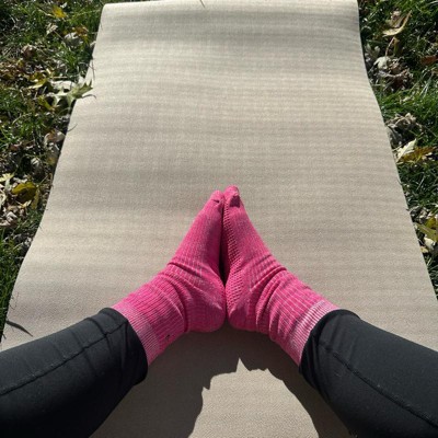 [This review was collected as part of a promotion.] This yoga mat is a game changer. I tried to get a close-up of the grip material because it is hands-down. The best grip I have had out of any yoga mat I have ever used. During yoga, I think grip is almost as important as comfort when it comes to the thickness of the yoga mat, and this has both When used on tile wood floor the padding is sufficient to rest, the sensitive parts of your body, such as a kneecap or elbows on the ground without causing discomfort