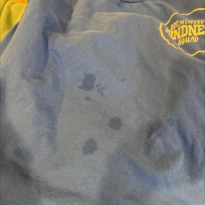 We're sorry to hear that happened, and we're happy to help! Rewashing the stained garment with your detergent and favorite stain treater could help with stain removal. We'd like to learn more to help further, so please give a call when you can at 1-800-888-4246, M-F 9am-6pm EST.