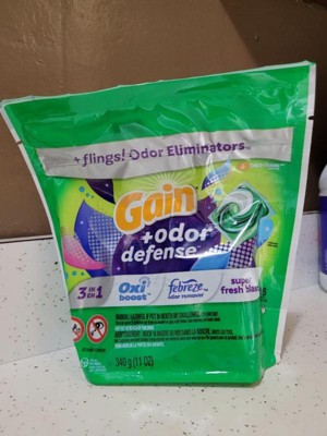 - POWERFUL CLEANING: Gain Flings combine OxiBoost and Febreze for powerful stain removal and all-day freshness