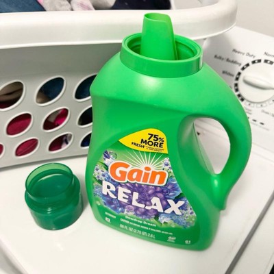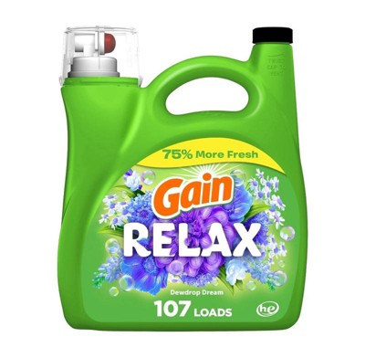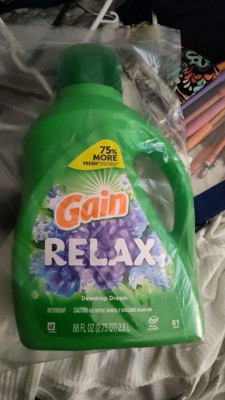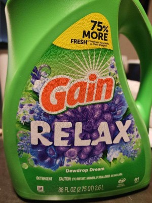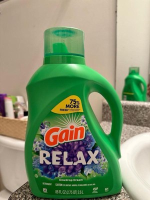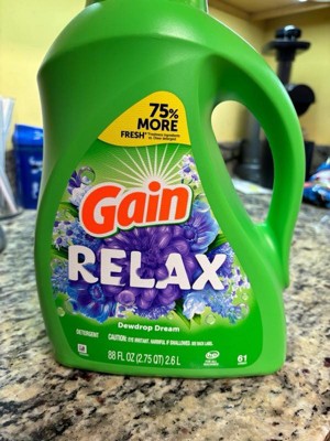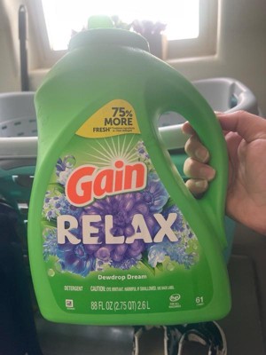 - Includes 88 fl oz of Gain Liquid Laundry Detergent, Relax, Dewdrop Dream, enough for 61 loads