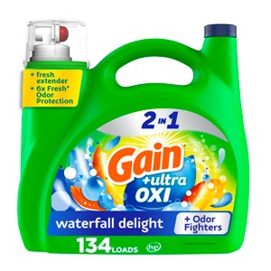- Includes one 194 fl oz bottle of Gain Ultra Oxi Liquid Laundry Detergent in Waterfall Delight Scent, enough for 134 loads