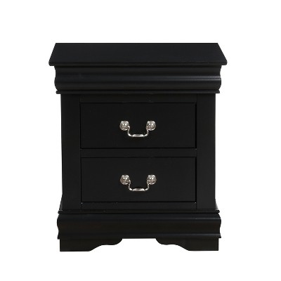 Bring simple style and practical storage to your bedroom with this Galano 2-Drawer Nightstand, designed to fit comfortably beside any bed. Its 22.8" W × 15.7" D × 26.8" H size offers a balanced profile, while the smooth metal-glide drawers keep essentials like glasses, chargers, and bedside items tucked neatly away. An open shelf adds extra room for books, small baskets, or display pieces, making it a helpful addition for both small and spacious bedrooms. The decorative trellis-style drawer fronts add a subtle touch of pattern that blends easily with modern, transitional, or traditional décor. Built from durable engineered wood with a clean black finish, this nightstand features a 24 lb tabletop capacity and 11 lb support in each drawer and shelf, giving you everyday functionality that suits apartments, guest rooms, or primary bedrooms. Clear instructions are included for a smooth assembly experience.