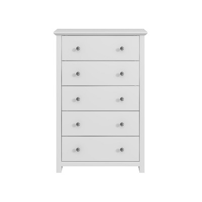 The Galano 5-drawer dresser is designed to bring practical storage and a clean, modern look to bedrooms, guest rooms, and apartment living spaces. Its tall profile features five smooth-glide drawers that make it easy to organize clothing, accessories, and everyday items while keeping a compact footprint on the floor. An interlock drawer system supports safer use by limiting multiple open drawers, and anti-tip hardware is included for added stability when installed properly. Crafted from manufactured wood, this dresser is finished with streamlined lines and bar-style metal handles that add a subtle contemporary touch. The top surface offers space for everyday items or personal décor. With overall dimensions of 31.3" W × 15.6" D × 47.2" H, this dresser provides balanced storage that fits comfortably into small and medium-sized rooms.