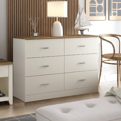 The Galano 6 Drawer Dresser offers practical storage with a clean, modern design that fits well in bedrooms, guest rooms, and apartments. Its wide horizontal layout provides six smooth-glide drawers, making it easy to organize clothing, accessories, or folded linens while keeping items within reach. Made from manufactured wood, the dresser features metal drawer pulls that add a simple, contemporary touch. An interlocking drawer system and included tip-over restraint help support added stability for everyday household use. With an overall size of 47" W × 15.5" D × 31.7" H, this dresser delivers generous storage capacity while maintaining a streamlined footprint suitable for a variety of room sizes.