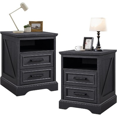 Galano Modern 2-Drawer Nightstand Set of 2 in Dusty Gray Oak 18.9" W × 16.3" D × 20.3" H