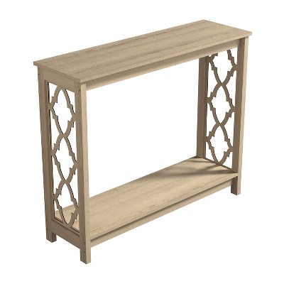 Bring a warm, modern touch to your home with the Galano Modern Console Table, designed with a clean fluted front and smooth sliding door that keeps everyday items neatly tucked out of sight. Ideal for entryways, hallways, or behind a sofa, its slim 41.7" width and 11.2" depth work well in smaller spaces without overwhelming the area. Rounded edges soften the silhouette while the built-in shelf gives you more room for decor, books, or baskets. Made from durable manufactured wood and standing 28.9" tall, this storage console brings simple, functional design to any room. Assembly is straightforward with the included instructions, making it an easy addition to your home.