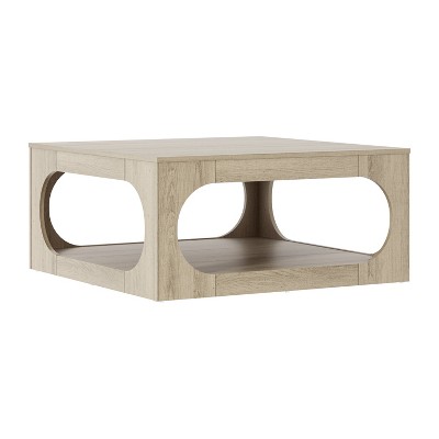 Bring a warm, easygoing feel to your living room with this rustic coffee table from Galano. Designed with a spacious 34.8" wide tabletop, it offers plenty of room for snacks, remotes, and your favorite décor pieces. The open lower shelf adds convenient storage for baskets, books, or blankets, helping everyday essentials stay organized and within reach. Crafted from durable wood materials, this table blends natural texture with a sturdy feel that suits both casual homes and modern apartments. Its clean, simple silhouette pairs effortlessly with many furniture styles, making it a versatile centerpiece for small and large living spaces alike. Measuring 34.8" W x 34.8" D x 16.1" H, it fits neatly in front of a sofa while giving your room a grounded, welcoming look.