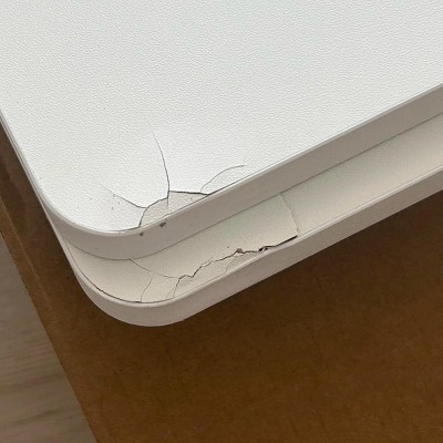 The top part of the desk was cracked on both sides so I returned it. I ordered the same one again and will see how it is when it arrives. I liked the size of the desk. Bummer the handling was so poor. Perhaps they can add more padding considering that it is quite heavy.
