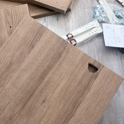 received damage- one of the night stands has a huge hole on the side. i don’t know how it passed quality check. very disappointed