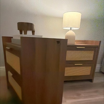 GALAXHERO Rattan Nightstands, Night Stand with Charging Station, Boho Bed Side Table with 2 Drawers, End Tables Bedroom, Living Room, Natural Oak