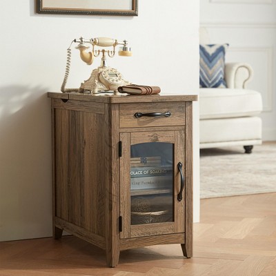 GALAXHERO Set of 2 Farmhouse End Tables with Charging Station, Slim Sofa Side Tables with Open Storage Shelf, Espresso Finish, Ideal for Living Room