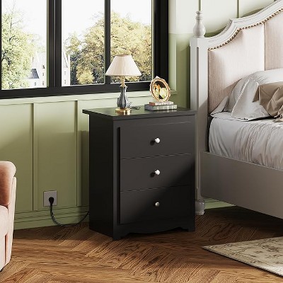 GALAXHERO Tall Nightstand, Wood Nightstand with 3 Drawers, End Table for Bedroom and Dorm, with 2 USB Ports and 2 AC Outlets,Black