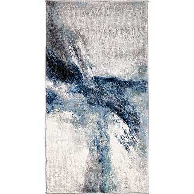 Elevate your living space with the modern elegance of our 4' x 4' Square area rug, a harmonious blend of blue and grey tones crafted into a contemporary abstract pattern that evokes a sense of calm sophistication. This striking piece, designed with an artistic touch, captures the essence of abstract expressionism, incorporating fluid shapes and a serene palette that will complement your decor with its soothing presence.