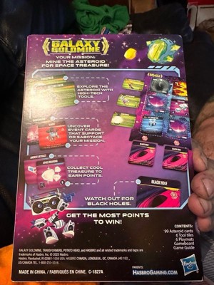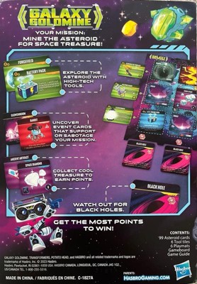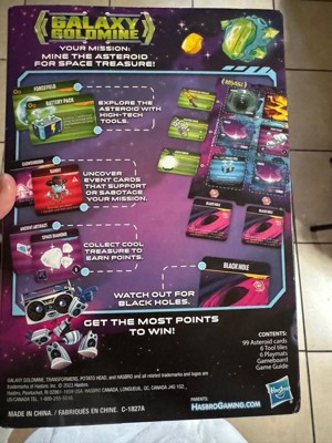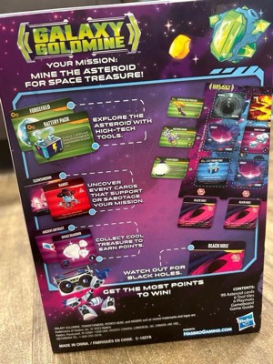 [This review was collected as part of a promotion.] What a great little game! It’s perfect for 2-6 people ages 10+ and takes about 20 minutes to play. Galaxy Goldmine is an absolute blast! This game combines strategy and excitement in a way that keeps everyone engaged. The gameplay is dynamic, creating a thrilling experience for players of all ages. It's become a family favorite for game nights, and I appreciate Hasbro's creativity in bringing such an enjoyable and entertaining game to the table. Highly recommended for those seeking a stellar gaming experience!