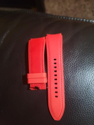 the reviews for this item are terrible and are justified. my band's leather started to peel on both sides within one week. however, a bit of super glue and the band looks like new and has held for months and continues to hold (fingers crossed). so although the quality is terrible especially at this price point, i would buy this item again because it was an easy fix, and the band does look great. rubber inside means i can wear this to the gym and red leather outside does look great.