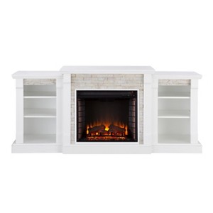 Sold as a set of multiple boxes. Set your heart aflame with this lodge inspired electric fireplace. Bookcase storage shelves media, novels, or tchotchkes. Crisp white melds with white simulated river stone for a rustic touch on this traditional fireplace silhouette. Low profile and wide scale, this electric fireplace with bookcases turns on chic style beneath your wall mounted TV in the living room or as a sleek buffet in the dining room. True to life. This electric fireplace saves energy with long-lasting, cost-effective LED bulbs, while igniting ambience with realistic flames and supplemental heat. No professional installation required, simply plug into any standard outlet. Control from your favorite easy chair with the easy-to-use remote control. When you crave the look, but not the heat, turn on just the flames and enjoy year-round.
