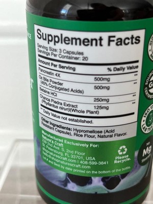 Gallbladder Support Capsule, Pure Ox Bile Salts, Pancreatin & Chanca Piedra for Gut Cleanse, Detox & Repair, Spearmint Flavor, Nature's Craft, 60ct