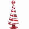 Set of 2 Candy Cane Forest decorative figurines shaped like candy cane striped Christmas trees with peppermint candy tops. The tallest tree stands 6.22 inches, making this set perfect for tiered tray styling, tabletop displays, and small cheerful Christmas gift giving.