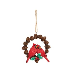 Gallerie II Paired Cardinals Pinecone Wreath Christmas Ornament