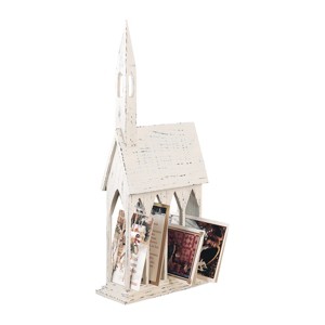 Gallerie II White Church Chapel Large Christmas Card Distressed Wood Mail Holder 11" x 24"