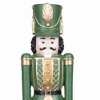 - Dressed in rich green and gold tones, this festive nutcracker figurine features a traditional silhouette with detailed handpainted styling that complements both classic and modern Christmas decor themes while standing out as an elegant focal piece for winter decorating.