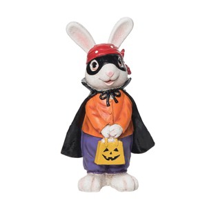 - DESIGN: Charming rabbit figurine dressed as Zorro brings playful Halloween style to your home. Its detailed costume and expressive pose add personality and seasonal charm to mantles, tables, or shelves. Perfect accent for festive decorating.