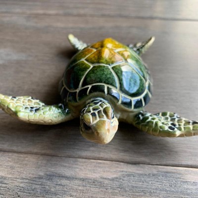 - Perfect for enhancing desks, end tables, or bookshelves, this small sea turtle figurine offers a serene touch of coastal charm. Ideal for nautical, ocean-themed, or beach house spaces, it delivers effortless style in compact size.