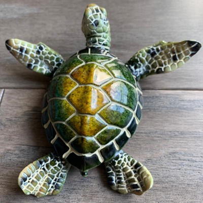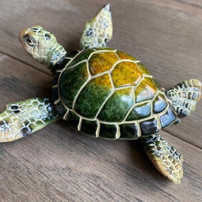 - Beautifully detailed in resin, this sea turtle sculpture captures the essence of the sea with realistic textures and an ocean-inspired palette. Its lifelike features and subtle finish evoke peaceful seaside imagery.