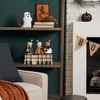 - Features three charming sitting figurines including a pumpkin, skull, and Frankenstein character, all styled with playful details. Their whimsical expressions and seated design make them a delightful seasonal accent for any surface.