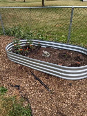 Growing produce, flowers, and herbs has never been easier with the Oval Galvanized Planter by Home-Complete. This 82-inch-long by 35-inch-wideoval outdoor planter provides ample room to grow, and the durable galvanized metal material features a rust-resistant coating for long-lasting use, season after season. The open bottom provides drainage, and the raised design allows you to control the soil mix, so your plants have the perfect environment to thrive with this raised plant box.