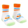 Gama Go presents Funny Feet: socks for toddlers with a smiley face on the top and cute sayings on the bottoms! Made of comfy 85% Cotton, 13% Polyester, 2% Spandex, these socks fit toddlers 12 - 24 months. One pair of socks per package.