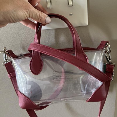 [This review was collected as part of a promotion.] This is the wild fable Game Day clear pouchette crossbody bag in dark red. As you can tell by the photo it’s clear with red piping and red straps. I held it next to the light switch so you can see the size. It’s nicely made. Has the option to carry by a longer strap (adjustable) or by the smaller ones. It fits your phone, small wallet, lipstick and even a small pair of stretchy gloves. Perfect for game day! Highly recommend I received an incentive to write this review.