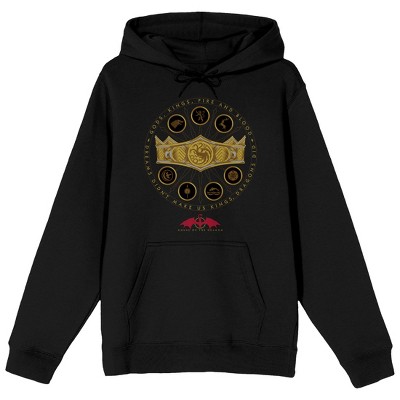 Game of Thrones House Targaryen Sigil Unisex Adult Pull-Over Heather Hoodie Large Black