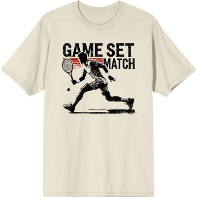- Custom Design: Features a silhouette of a tennis player on a vibrant distressed circle with "Game Set Match" text for a bold athletic look