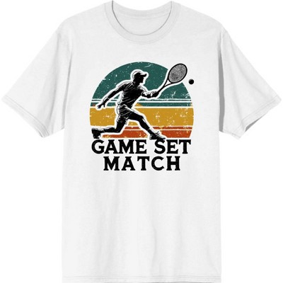 "Game Set Match" Tennis Sports Adult White Crew Neck Short Sleeve Tee-Medium