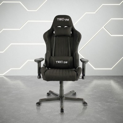 This high-performance gaming chair features a contoured molded foam seat and backrest for lasting comfort during long sessions. The adjustable height ranges from 19.5 to 22.5 inches and the chair reclines up to 150 degrees for relaxed positioning. The 2D adjustable padded armrests enable precise customization, while the adjustable lumbar and neck pillows provide added support. Upholstered in soft PU and supported by a durable steel frame and nylon base, it offers smooth mobility with non-marking dual casters. Dimensions: Chair 27"W x 27.5"D x 50"–53"H; Seat 19.75"W x 18"D x 19.5"–22.5"H; Backrest 16.5"W x 33"H.