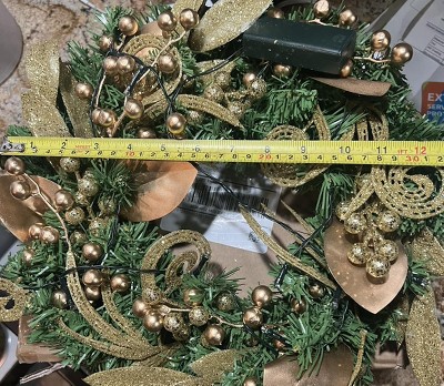 I just opened my box to work on my Christmas Decorations. The wreath looks like I picked it up at the thrift store. It is very small and not like the picture shown in the advertisement. I ordered early so it can’t be returned. Target usually has nice things but this wreath does not represent well for Target. Very cheaply made. Does not have a hanger affixed..