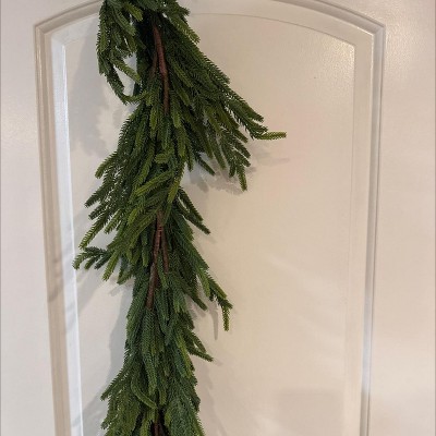 It looks much fuller in the picture. I wonder if the picture has 2 garlands intertwined? Mine arrived compressed. It needs fluffing to make it look decent. I am currently letting it air out so the plastic smell disappears. I am on the fence if I will return it. I will check out home goods before I decide. I wish it was nice and full. Target, you need to tell these companies to add some extra greenery and make them more full. These are too skimpy. How much extra can it cost? A dollar or two more?