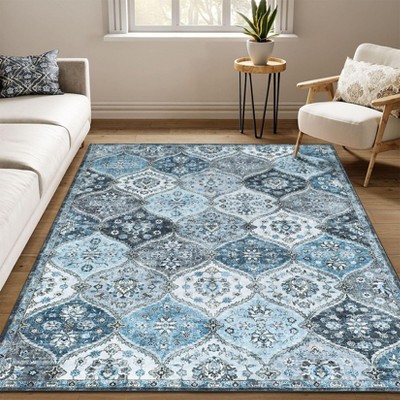 GAOMON Area Rug Living Room Rug Vintage Floral Print Rug Low Pile Non Slip Floor Carpet