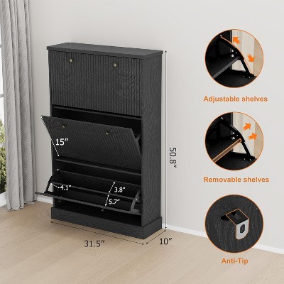 GAOMON Narrow Shoe Cabinet Extra Deep 11.8" – Fluted Entryway Shoe Storage with 2 Flip-Down Doors, Holds 12–16 Pairs, Space-Saving Organizer