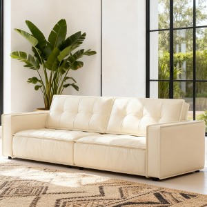 Gaoyangjiaju 95.2 Inch Leather Sofa with Solid Wood Frame