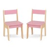 Overall, really happy with purchase. Furniture seems well built and stable. Was very easy to assemble. Love the two-tone pinks and wood tones. Probably won't use the bar for paper rolls until my toddler learns to not take it off. Perfect size and gift for my 20 month old. There is a large logo on the side of the table, which was unexpected, but it doesn't bother me. My toddler immediately colored the top with crayon and it washed off with a Clorox wipe and elbow grease. If it gets really banged up in the future, I plan on repainting it, which is why I went with wood instead of a plastic set.